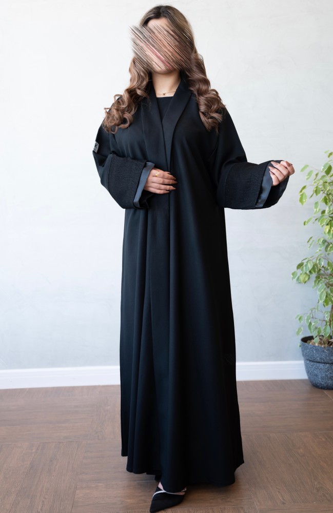قماش كريب كتاناكمام جاكار مزينة بالاورقنزانص كلوشطرحة طرف جاكار 🎁مدة تنفيذ وتفصيل العباية من 4 إلى 14 يوم
