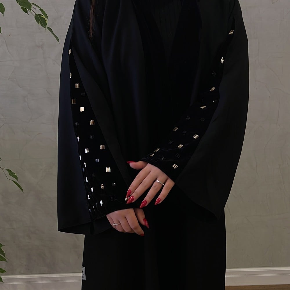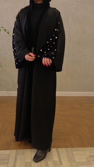 قماش كريباللياقه مخملقصتها ربع — نص كلوشكم واسع بتدخيلات المخمل والشك اليدويتفصيل /اسبوعطرحة مخمل هدية